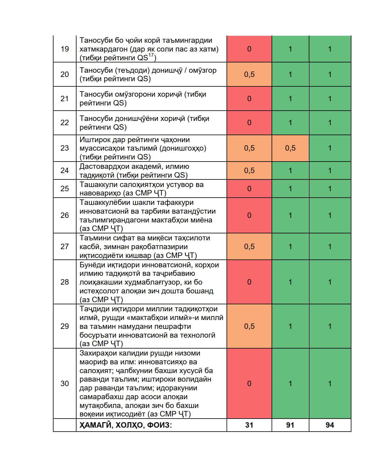 Аз ин рӯ, илова ба таҳлили боло-Ҷадвали №1 ва ниҳоятан баррасии масъала оид ба ташаккули низоми миллии муосири маориф номгӯи нишондиҳандаҳои асосӣ ва афзалиятнокии низомҳои ҷаҳонӣ дар поён оварда мешавад. Эҳтимол, ҷадвали поён ҳамаи нишондиҳандаҳоро фаро нагирад, аммо назари мо он аст, ки нишондиҳандаҳои асосии рушд бояд ҳамчунон бошад.