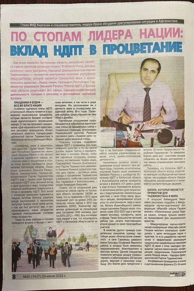 Маҷмӯаи мақолаҳо: ҲХДТ — чароғафрӯзи роҳи халқ. — Душанбе: «Ирфон», 2024. — С.181-190