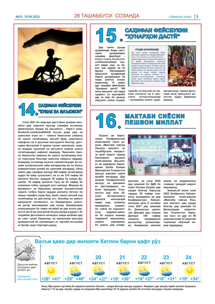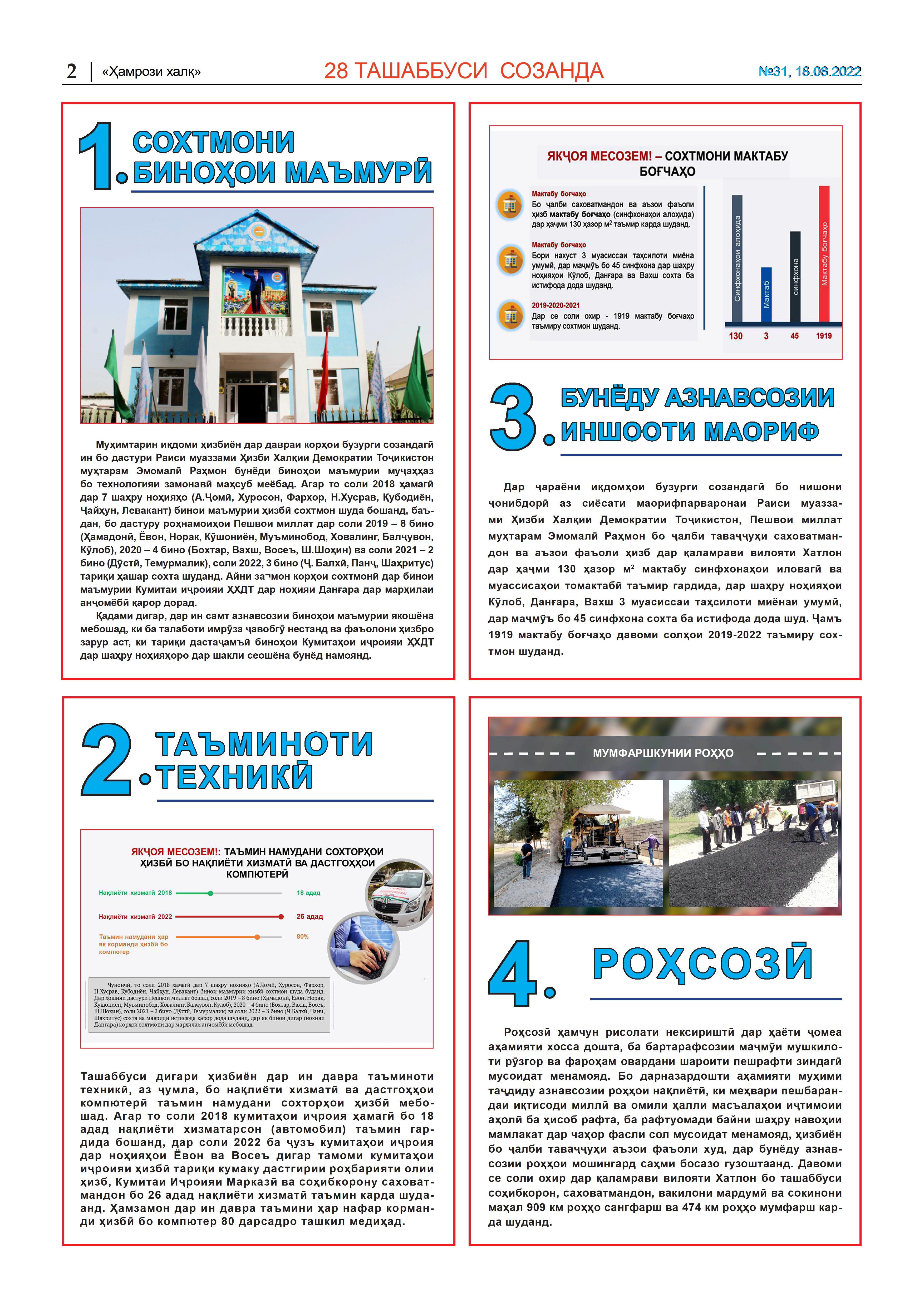 Маҷмӯаи мақолаҳо: ҲХДТ — чароғафрӯзи роҳи халқ. — Душанбе: «Ирфон», 2024. — С.181-190