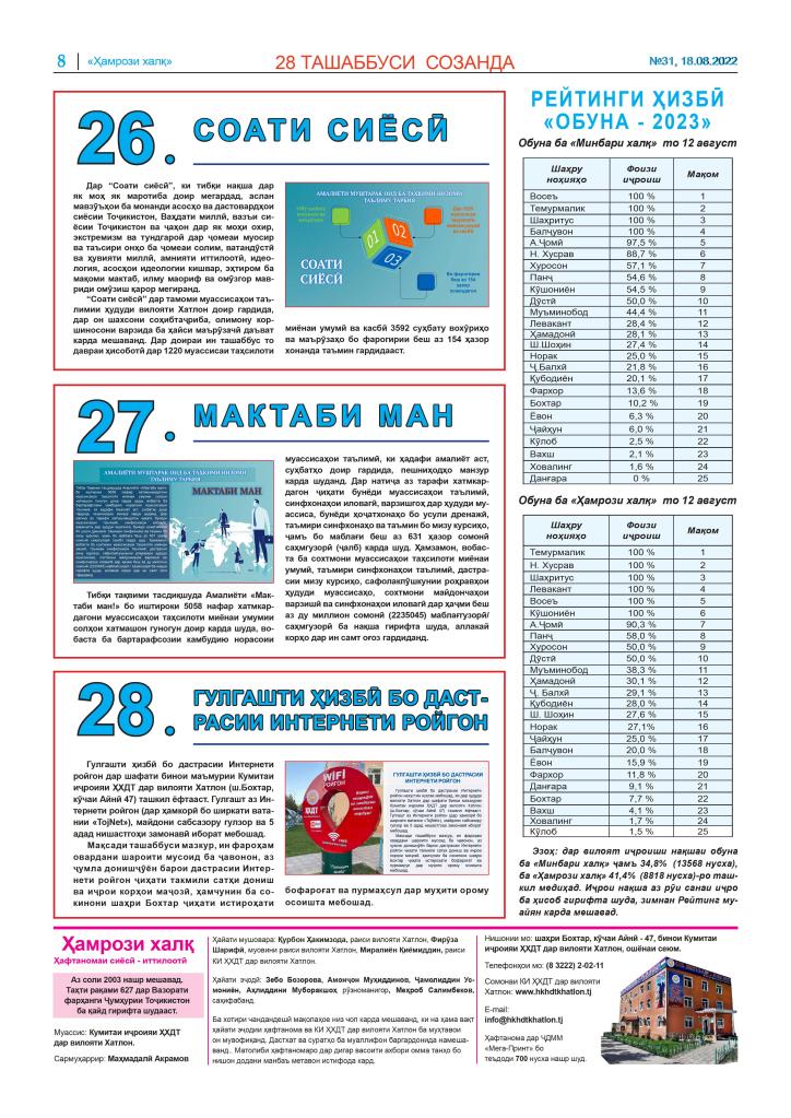 Читать «ҲХДТ – МАКТАБИ СИЁСИИ ПЕШВОИ МИЛЛАТ» далееАНДЕШАҲО ПЕРОМУНИ РЕЙТИНГИ ҲИЗБӢ